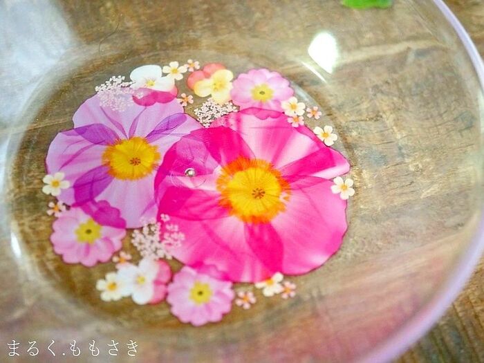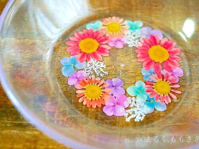 透明のボウルの中にお花の絵が印刷されています~