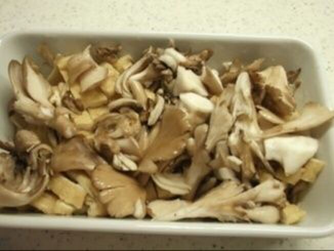 薄揚げが下になるように入れ、舞茸を上に被せる。