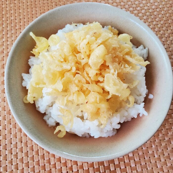 天カスは天ぷらを揚げたときに作っておいて冷凍保存します。