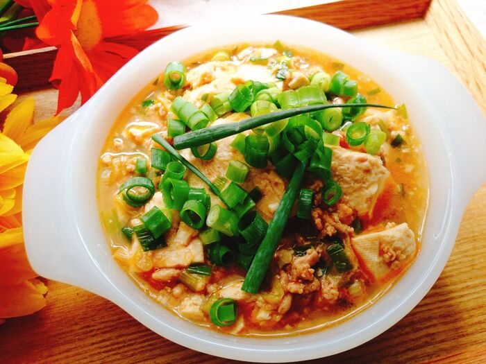 3.長ネギを加えて更に炒めAを注ぎ入れ沸々してきたら中華あじを加えて3分程煮込む