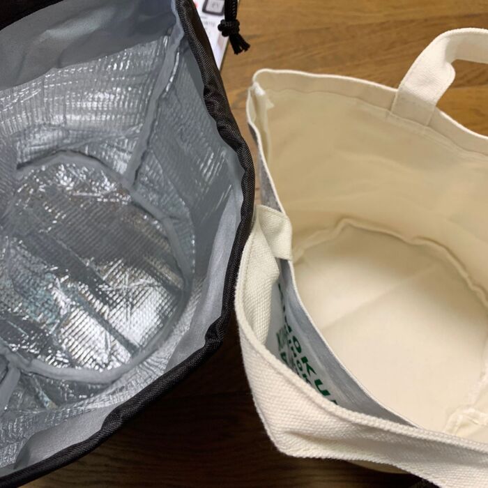 トートバッグ(左)と保冷バッグ(黒)の2つがついています。