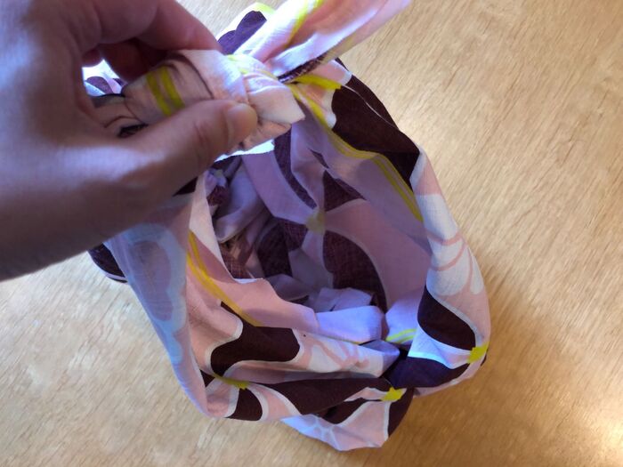 が、風呂敷を結んだだけのバッグなので、薄い布地や繊細な布地だと重いものを入れるのには向かないかも。