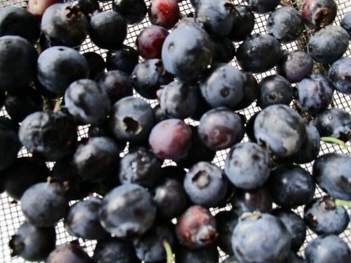 冷凍ブルーベリーと、摘んだブルーベリー半々です♪
