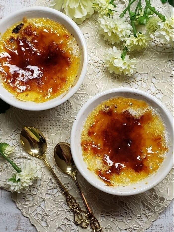 グラニュー糖を大さじ1と1/2の分量をまんべんなくかけたらバーナーで焼き色を付けたら完成。