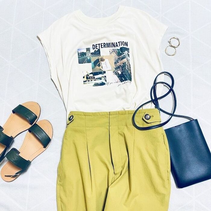 イエローパンツと合わせ、夏らしく明るいイメージで。