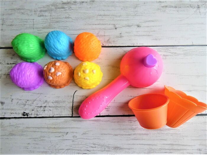 子供の手のサイズにちょうどいいサイズ!!毎日三男のアイスクリーム屋さん楽しんでいます!アイスクリーム屋さんごっこも楽しいけれど、アイスクリーム積み上げゲームも盛り上がりますよ!!