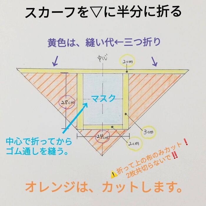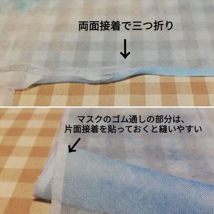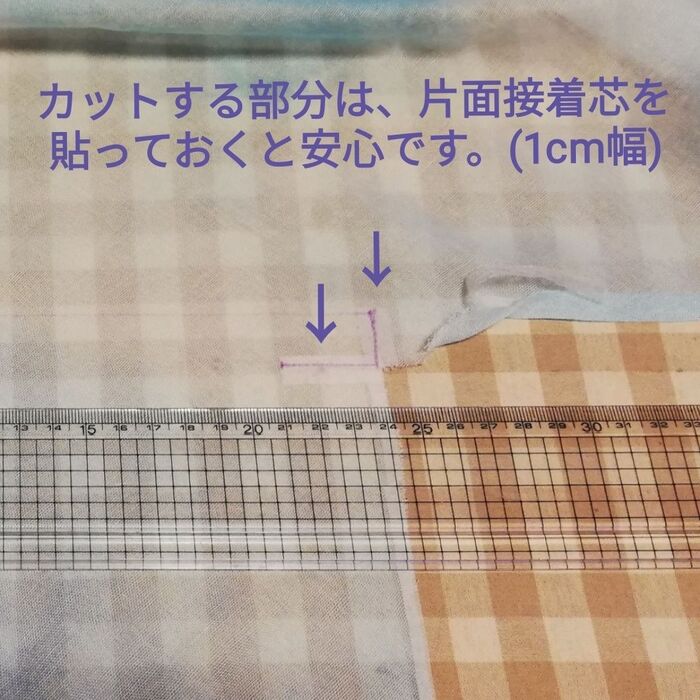 あらかじめカットする部分に、片面接着芯を貼っておくと安心です。