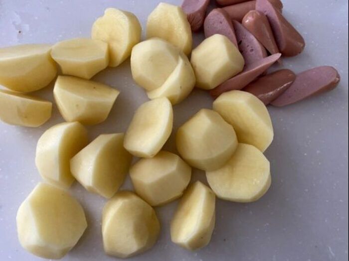 フライパンにオイルを入れじゃがいもとウィンナーを