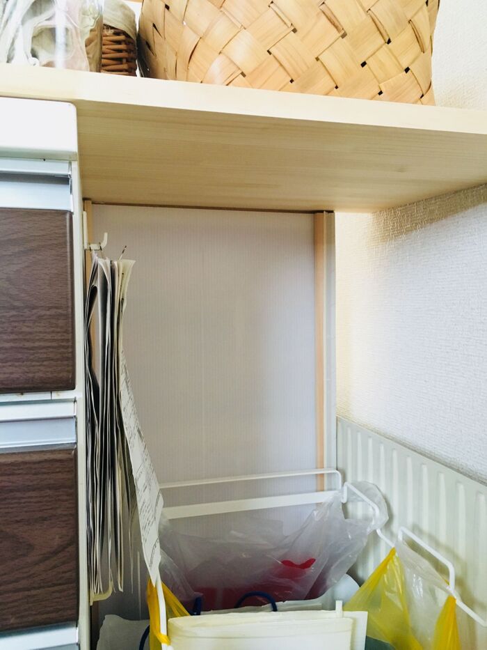 正面からは見えなくなったので、子どものプリントなどもこちらに一時的にかけていつでもみれるようにしています。