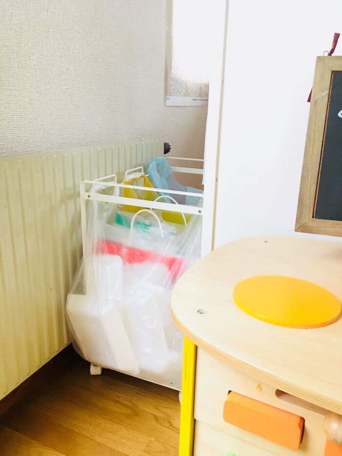 しかもままごとキッチンで隠していますが、ずらすとゴミが丸見えでした…