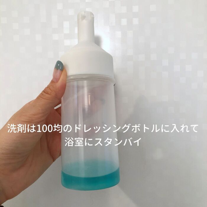 洗剤も100均のドレッシングボトルに入れて浴室に置いてます。