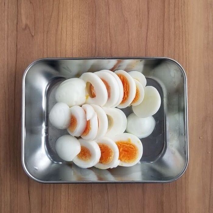 卵の皮を剥き、5㎜程度の厚さに切る。