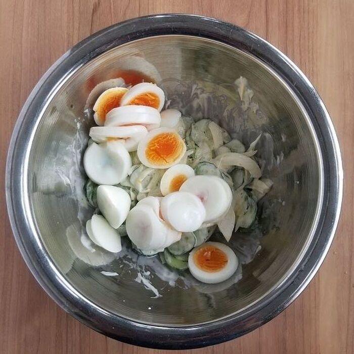 茹で卵を加えてざっくりと混ぜ合わせたら完成。