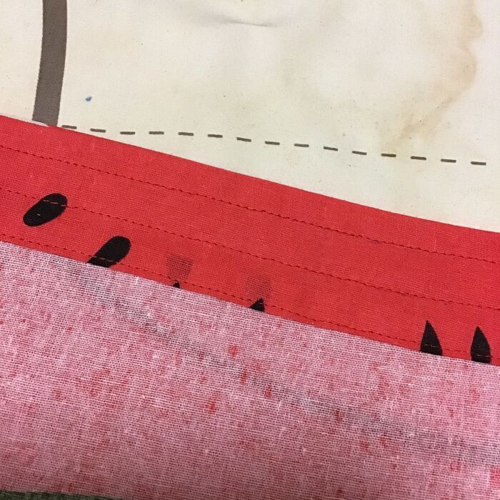 再度ウエストを折り、ぐるりと一周ミシンをかけます。
