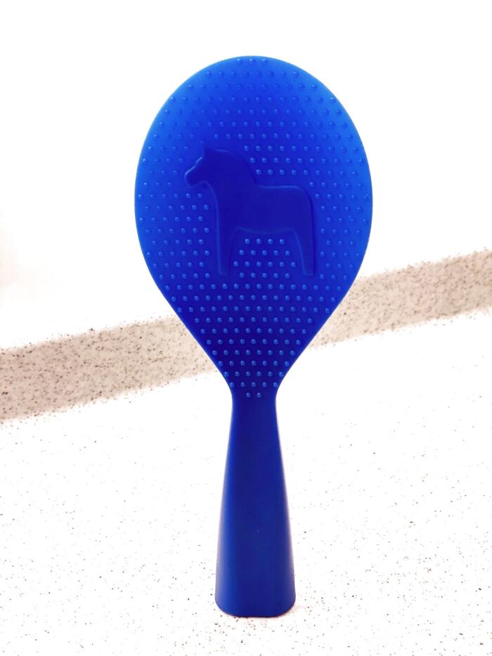 決してご飯が美味しく見えるとは思えない「青」のおしゃもじ。馬のマークも謎です。ひょっとしたら本国(スェーデン)では、おしゃもじではないのでは?と思える程ごはんには向いていないビジュアルです。