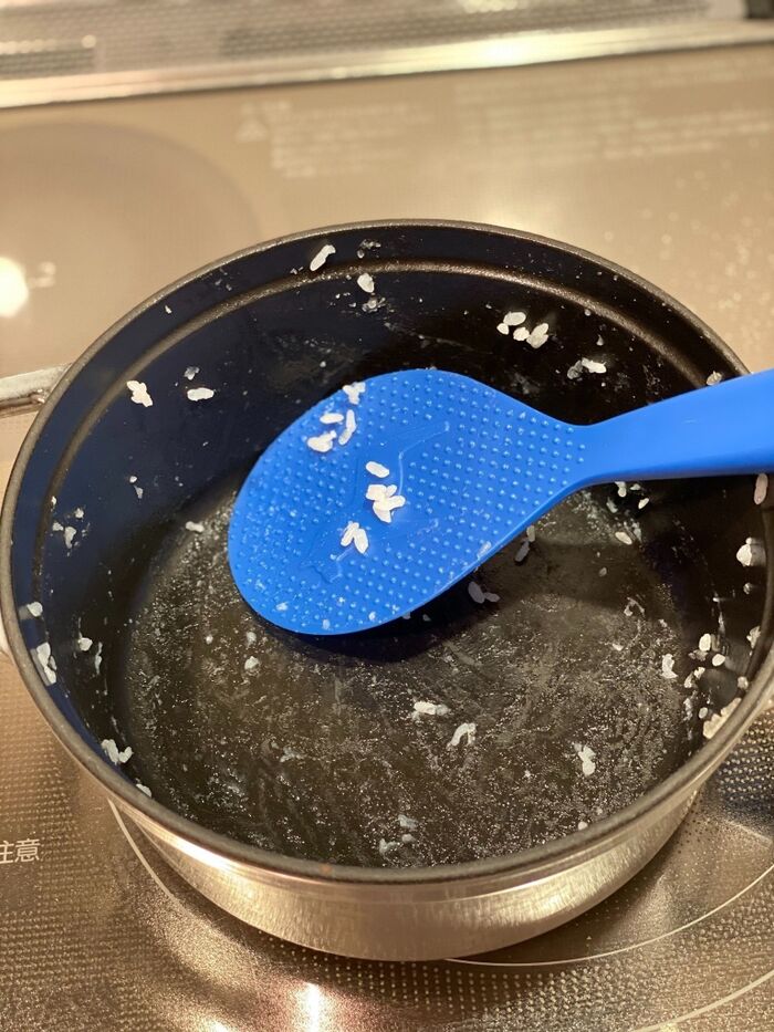 いつもの家事のほんの少しの違いなのですが、今まで普通のおしゃもじでお鍋をこそげてもなかなか取れなかったので、かなりストレスフリーになりました。