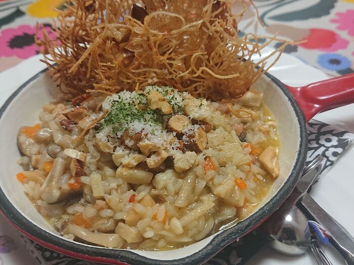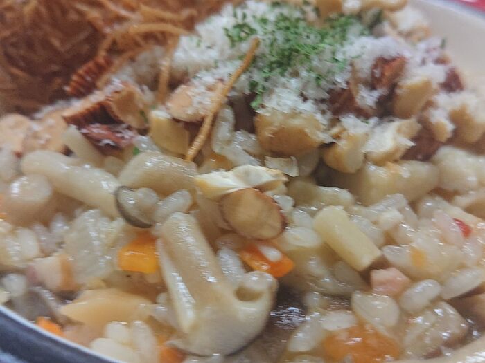 リゾットと言いながら・・・・米の3倍の野菜とキノコが入っています。