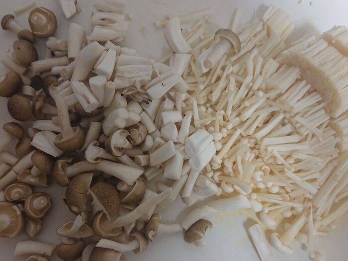 オリーブオイルで野菜、ベーコン、木の子を炒める。