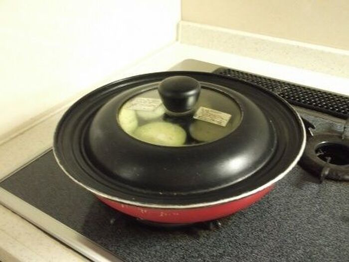 蓋をして更に10分蒸し焼きして