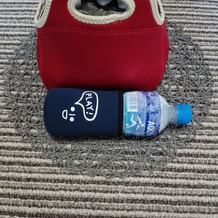 この、お弁当バッグの時は、お弁当箱の底にスポンジを入れて、上からこの飲料水でダブルで冷やします🎵