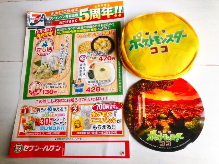 2020/08/07〜セブンイレブンで700円以上お買い上げ各店先着100名にポケモンエコバッグプレゼント♡ゲットして来ましたよ♪青森県にセブンイレブンが出来て5周年でオープン時は行列がすごかった思い出♡笑