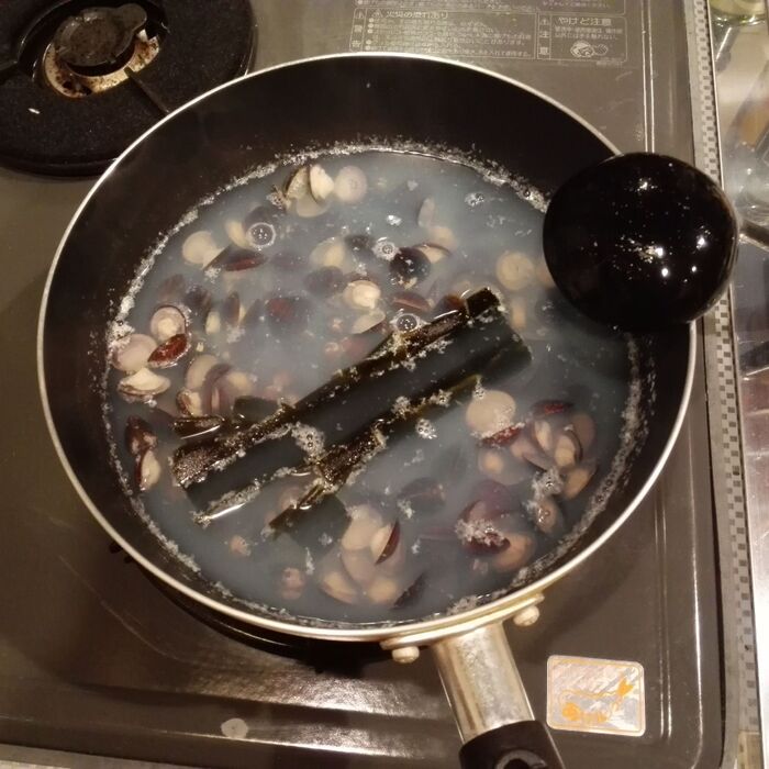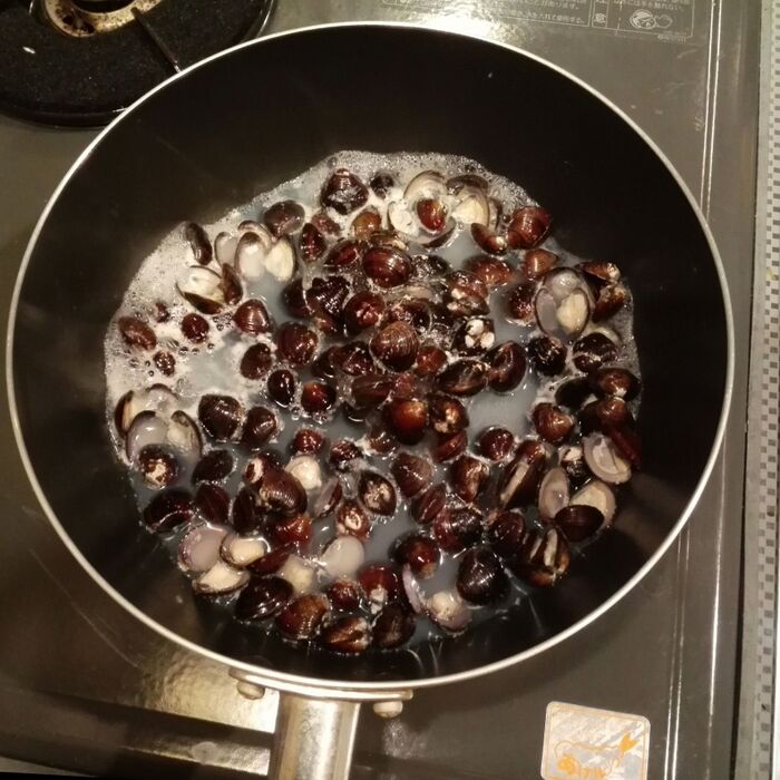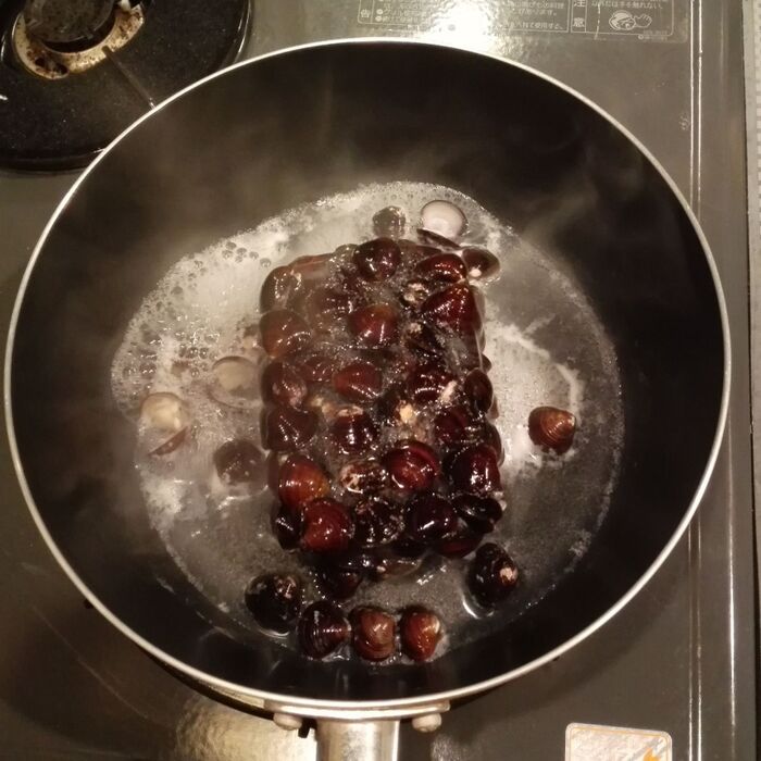凍ったしじみを、そのまま鍋にポンと入れて加熱するだけ‼