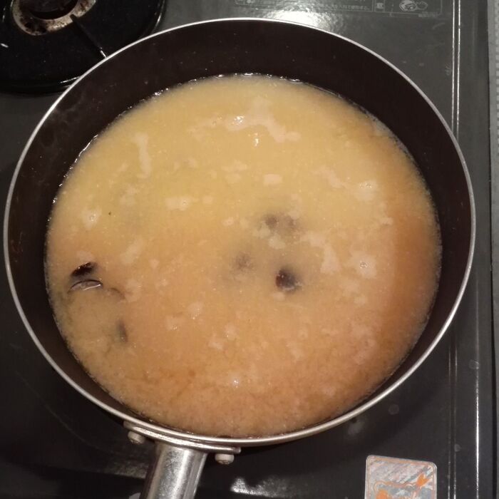 昆布を取りだし、いつも通りお味噌を入れれば完成です‼