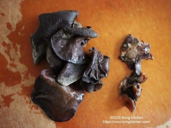 生きくらげは軸を落とし、食べやすい大きさに切る。