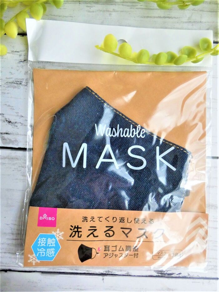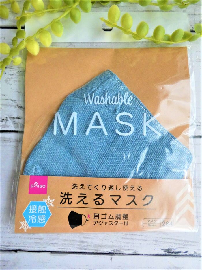 ダイソーで販売されている洗えるマスク110円!!色は、紺と水色があります。