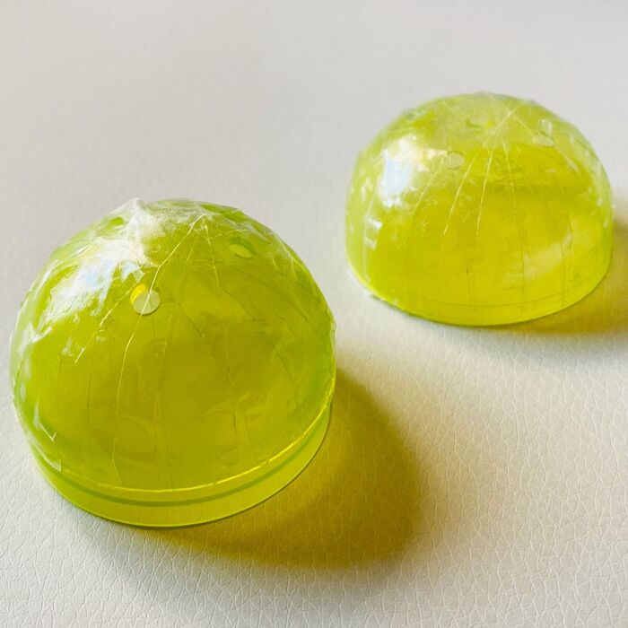 両面テープをドームの中心に沿って弧を描くように貼り留め(1枚貼るごとに剥離紙は剥がす)、