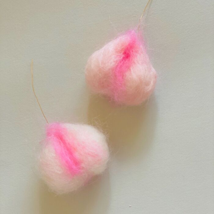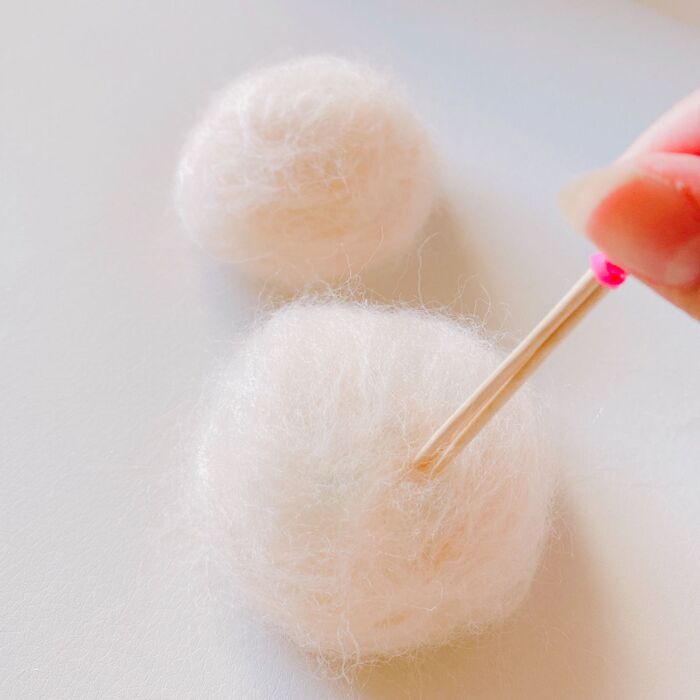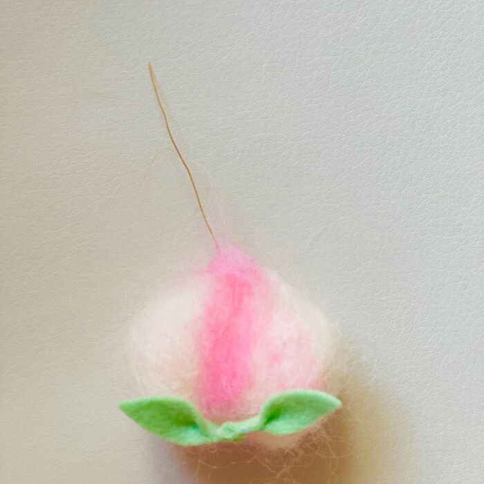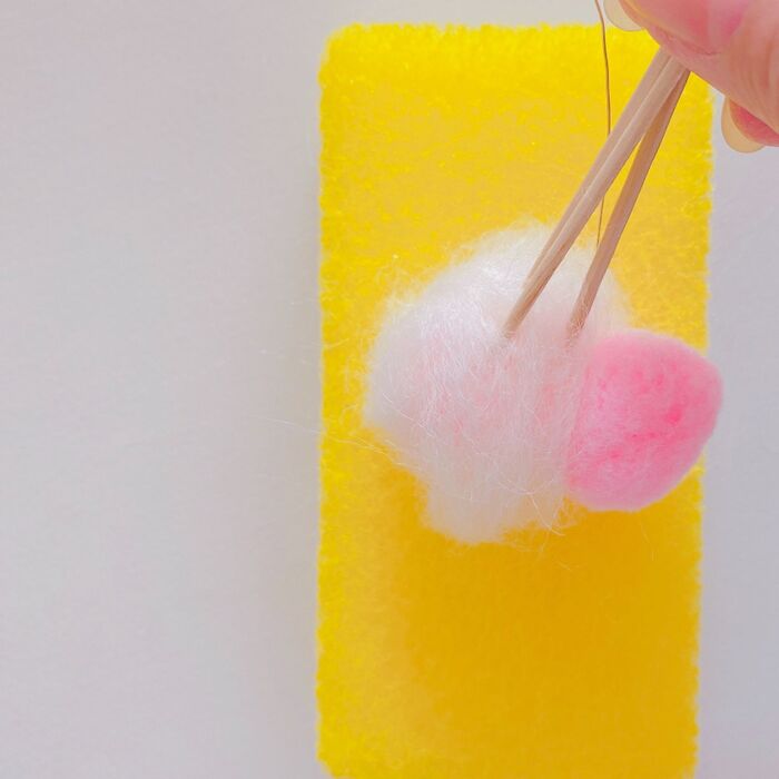 ケースの工程同様、濃いピンク色の羊毛フェルトを添えて、