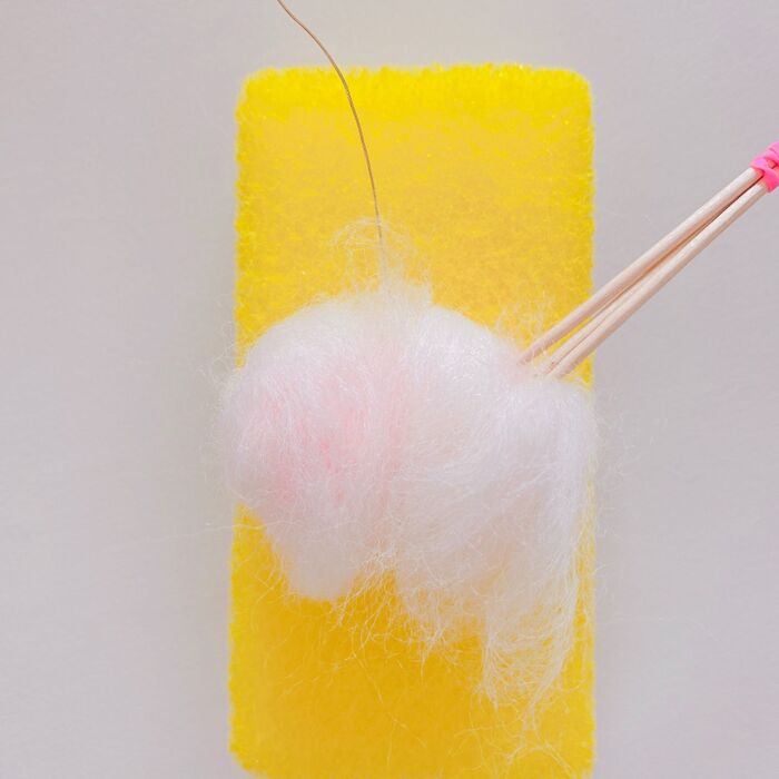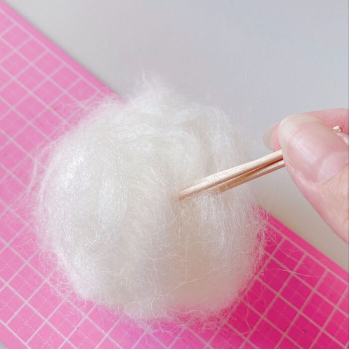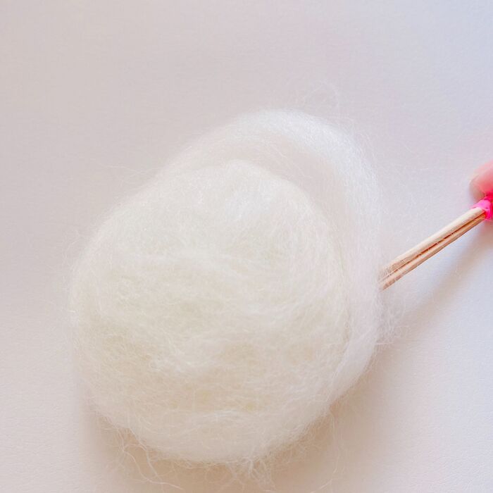 6㎝ぐらいに小分けにした少量の羊毛フェルトを端に添えて、