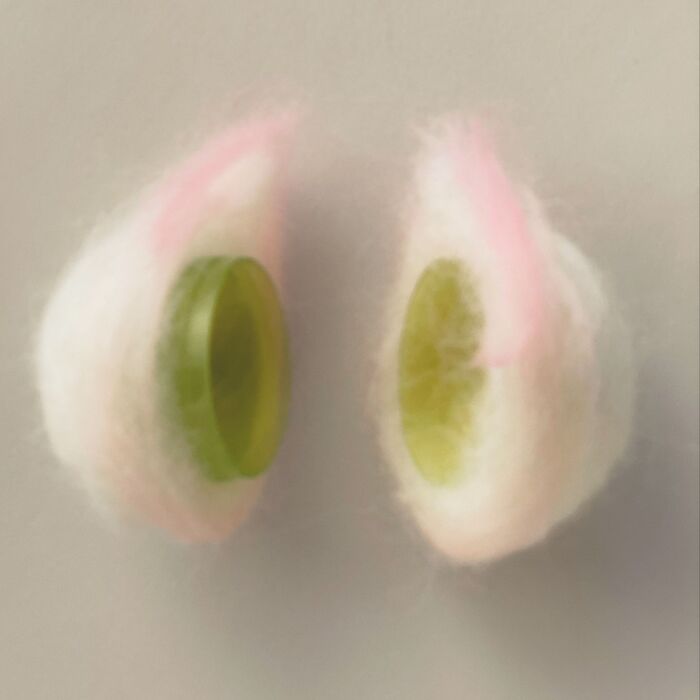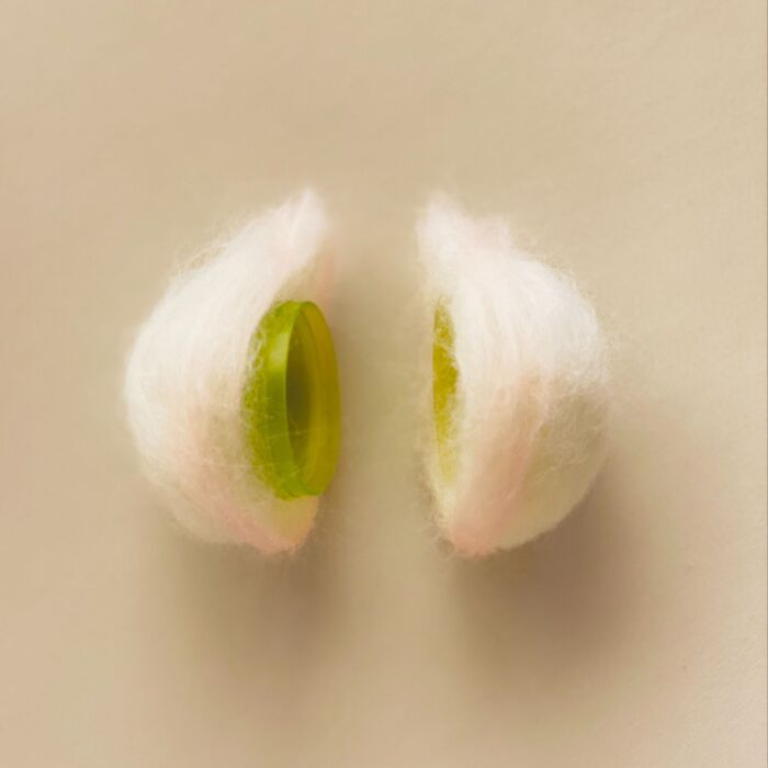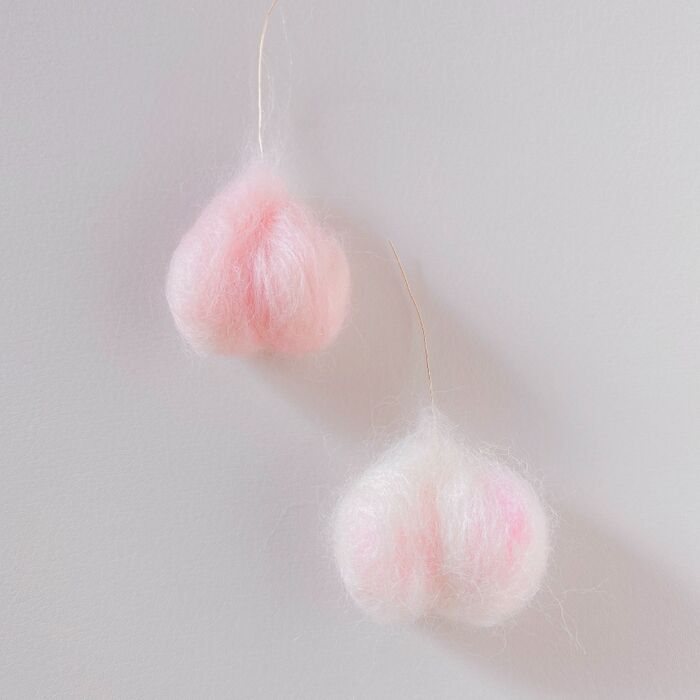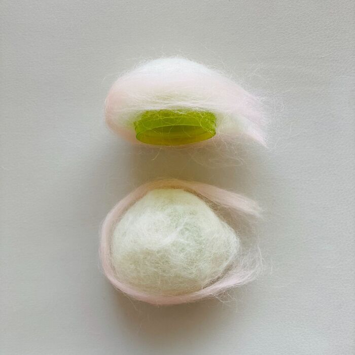 セットの中の淡いピンク色の羊毛フェルトを少量小分けにして、