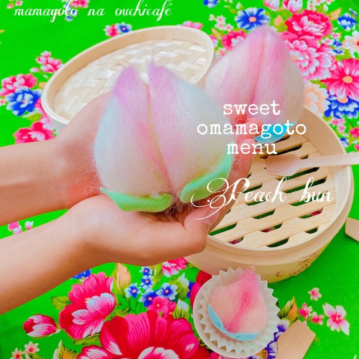 大きな桃饅頭の中から可愛らしい桃饅頭が姿を現す光景をままごとな時間でも育んでみました^^