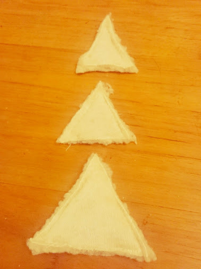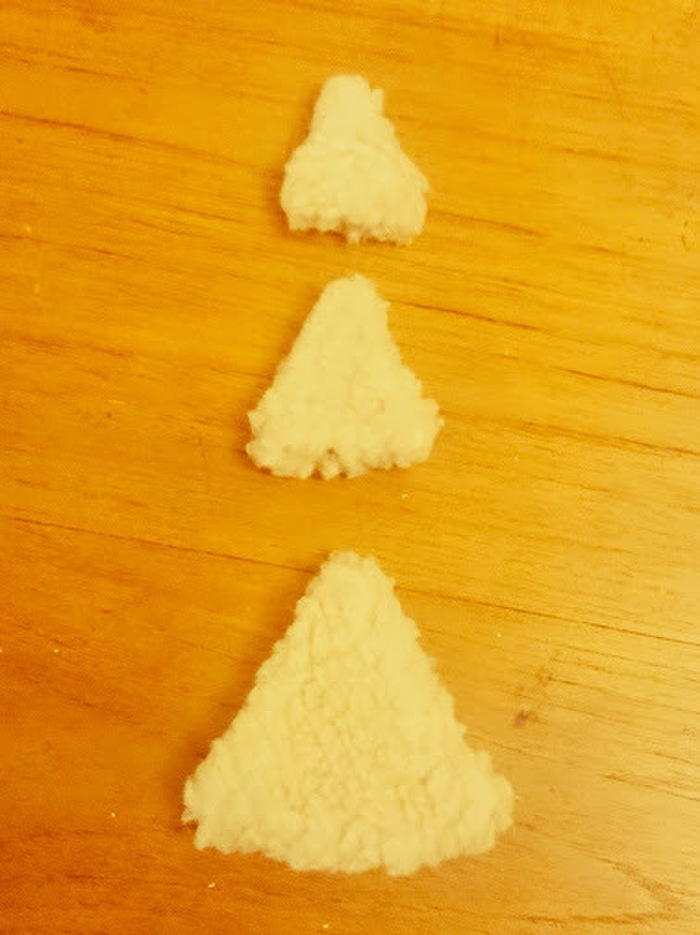モコモコのはぎれを、大中小3種類のサイズを2枚ずつ切ります。