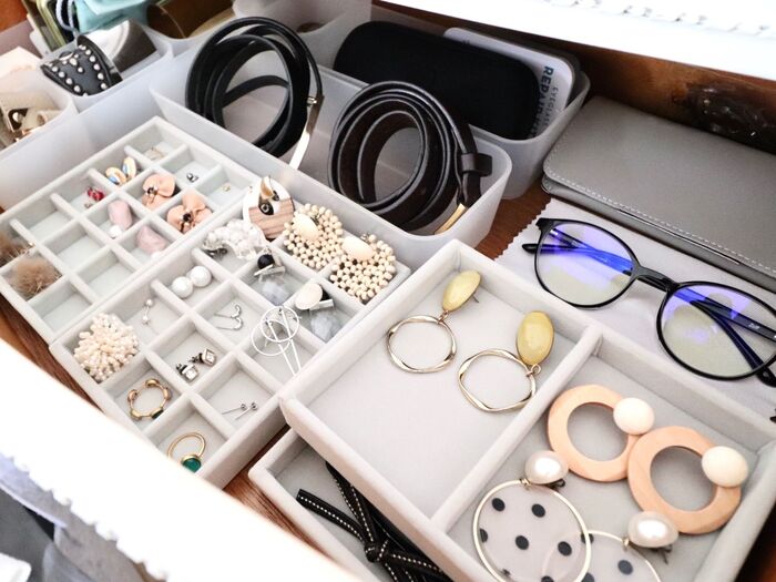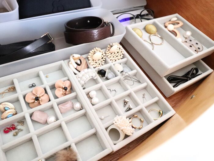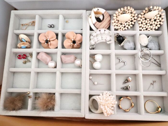 アクセサリー収納のお悩みを聞くと、ピアスをひとまとめにしてあり