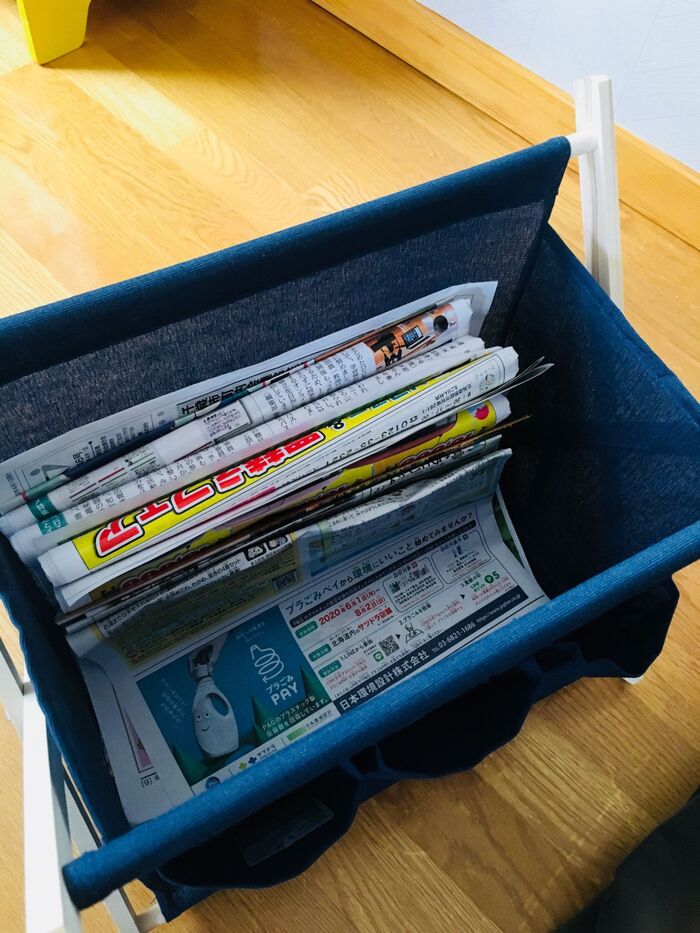 新聞を取っていない我が家ですが、フリーマガジンや何か包んであった新聞は貴重なのでここに保管してあります。