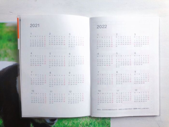 中を開くと2021と2022のカレンダー♡