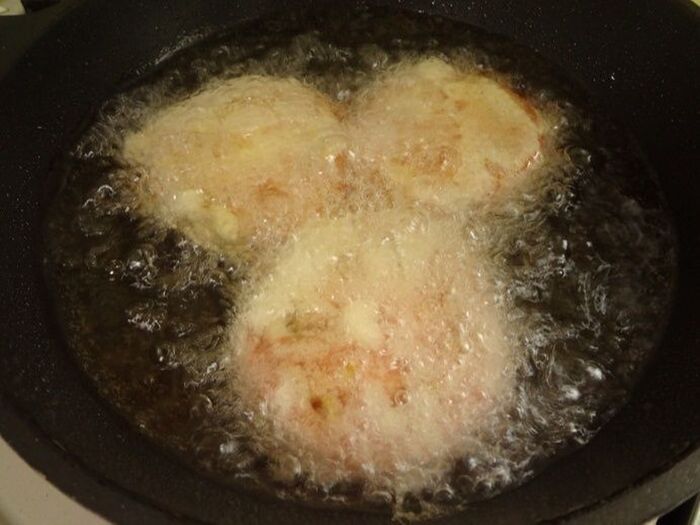 180℃くらいの油で、両面きつね色になるまで揚げたら完成♪