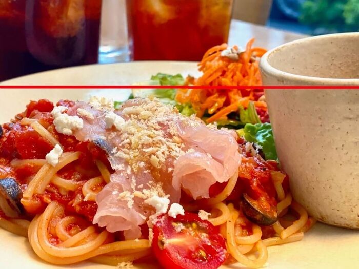 料理写真で意外に気づけないのが、お皿の水平。丸いお皿の縁が映り込んだとき、斜めになっていると、違和感の元に。そんなときもグリッド線で水平を取るとバランスの良い写真になります。