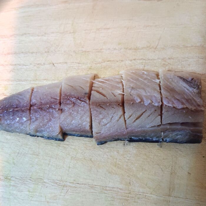 塩さばは2cmに切る。
