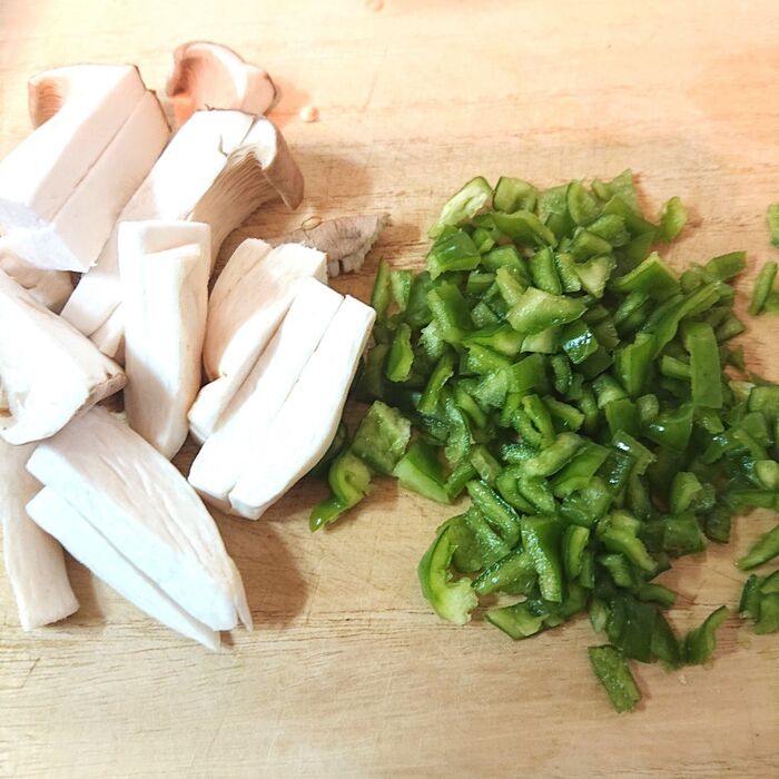 エリンギは食べやすい大きさに切る。