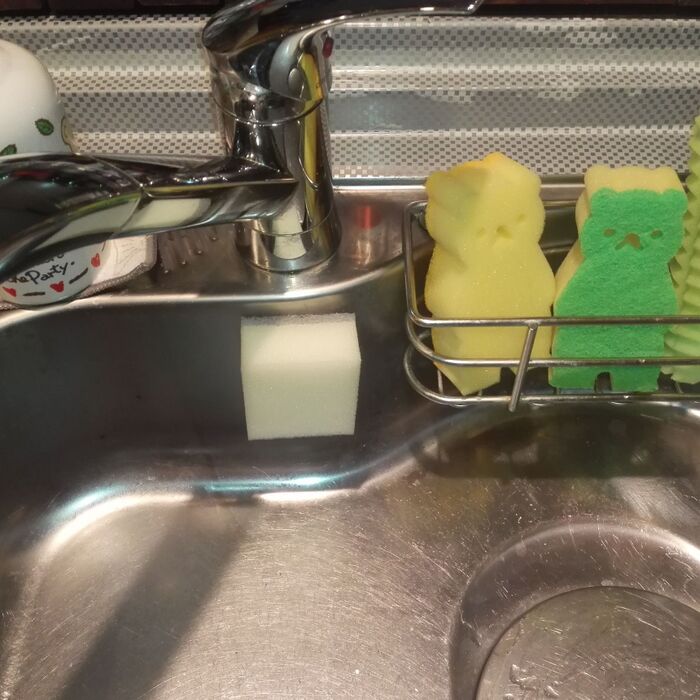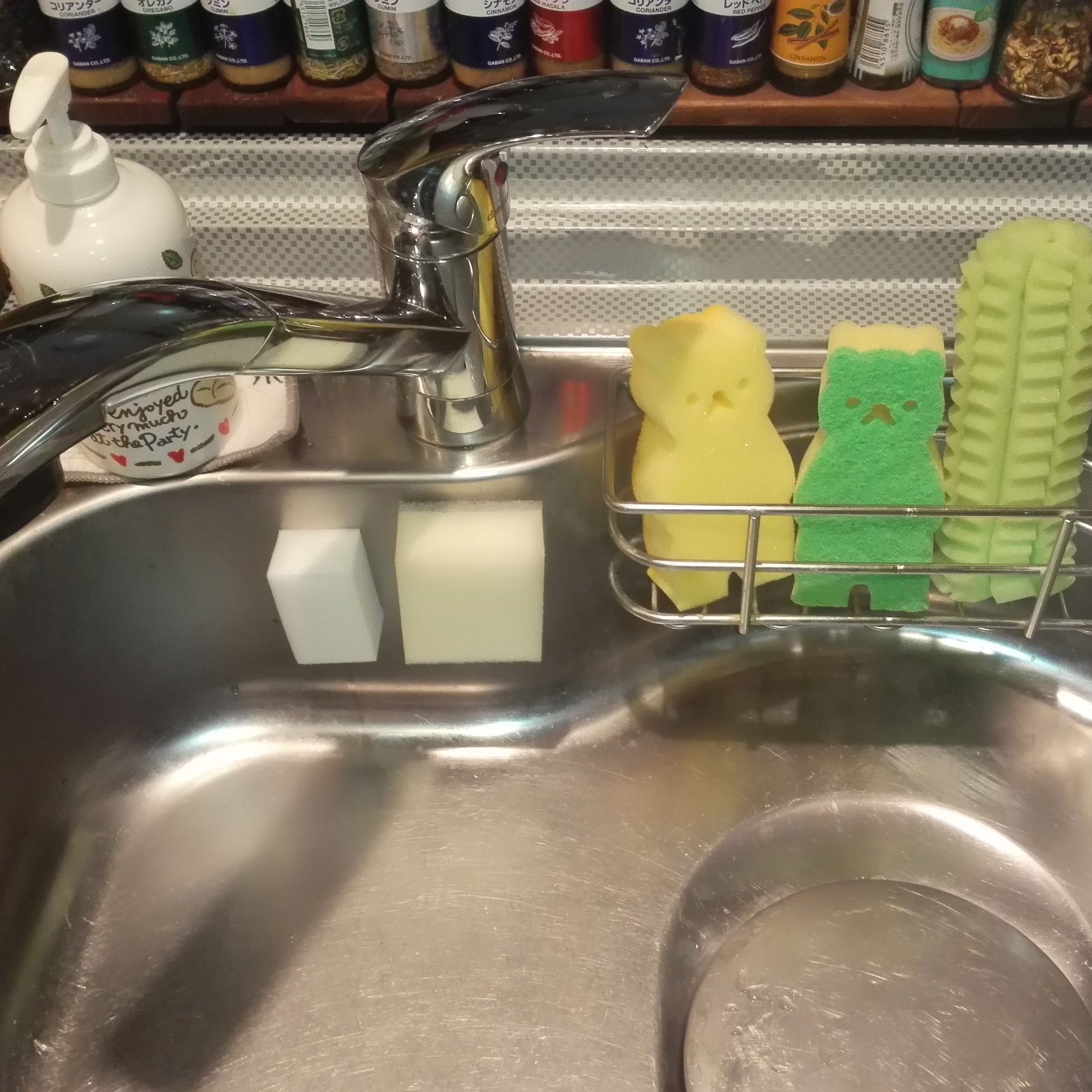 掃除を終えたらシンクの壁面にペタッ‼ これなら、自然に水気も落ちて衛生的です🎵