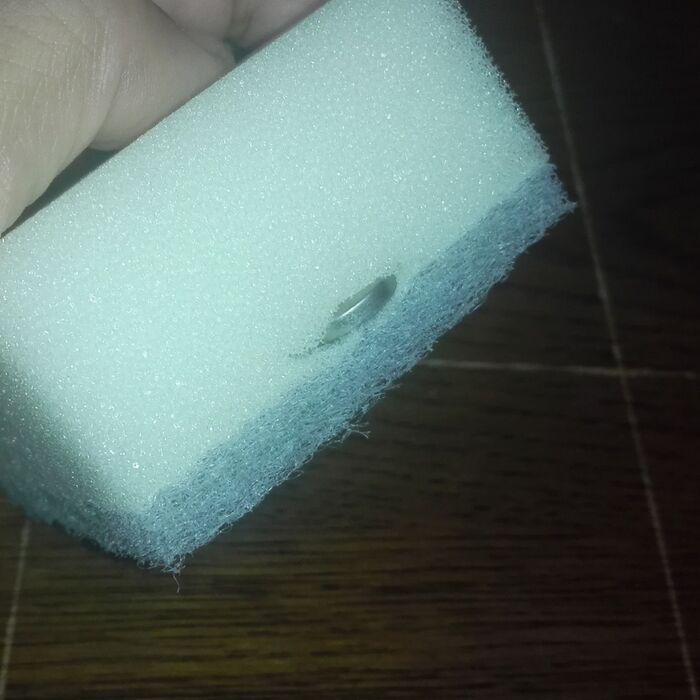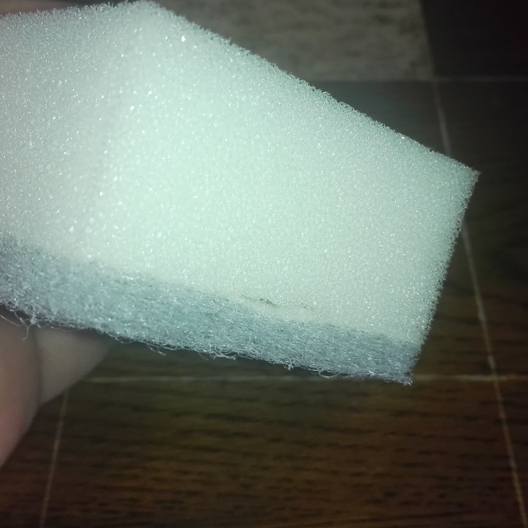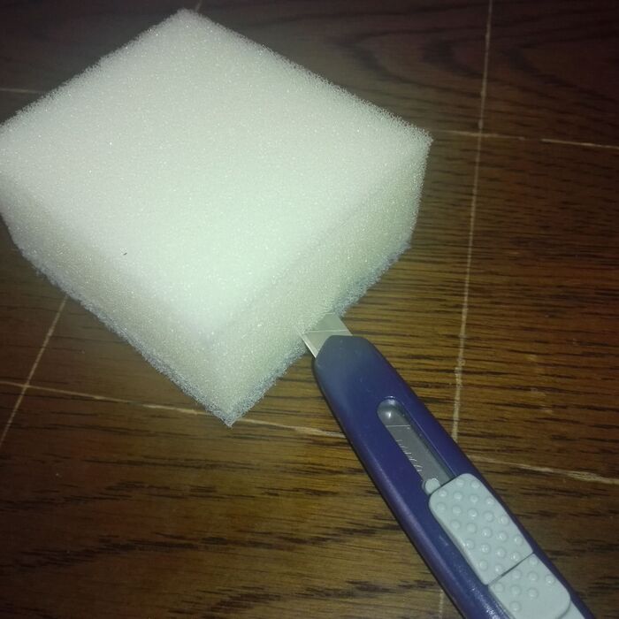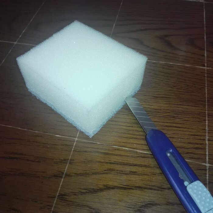 スポンジの真ん中に切り込みを入れてしまうと、磁力が届かないので端の部分にカッターで中央辺りまで切り込みを入れます✨