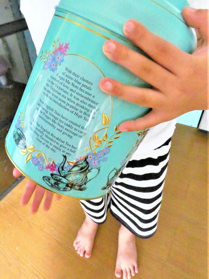 こんな日に限り3人息子が、お手伝いに積極的で次男君、この缶を抱えながら階段を上り、こけて可愛い缶がボコッと凹みました・・・(笑)