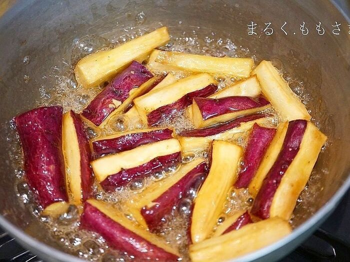 また柔らかくなるので、それをさつま芋にかけます!