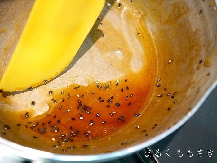 火を止め黒ごまをふり