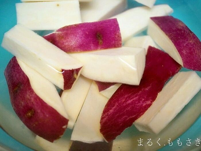 ①さつま芋はよく洗い皮つきのまま、