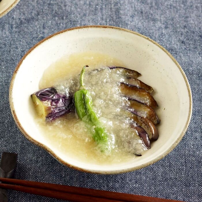 美味しい茄子と消化酵素の豊富な大根おろしでさっぱりと、秋の素材を楽しみましょう。 (長寿乃里・管理栄養士 大森)