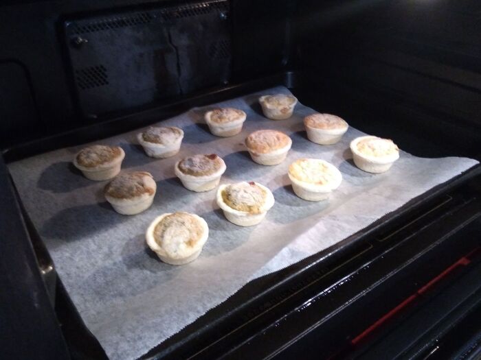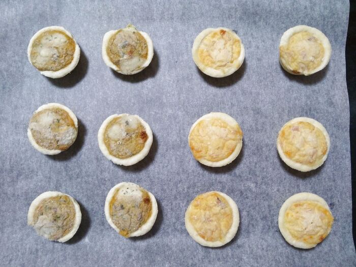2.オーブンのトレイに食べる分のミニキッシュを並べておく